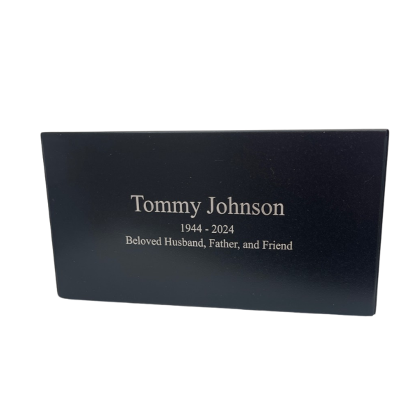 Engraving options are available to add a personalized name, date, or short message. Crafted to standard adult cremation capacity.